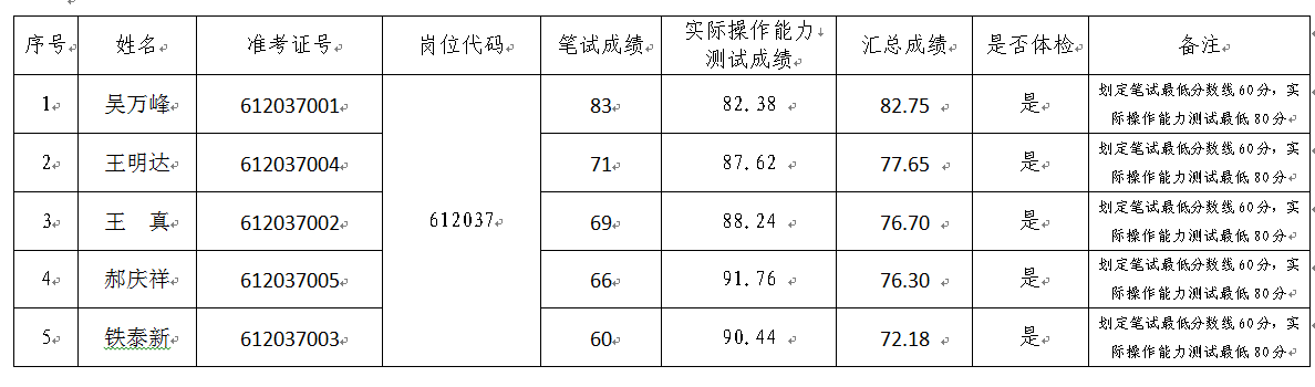 备注:总成绩=笔试成绩*60%+实操测试成绩*40%